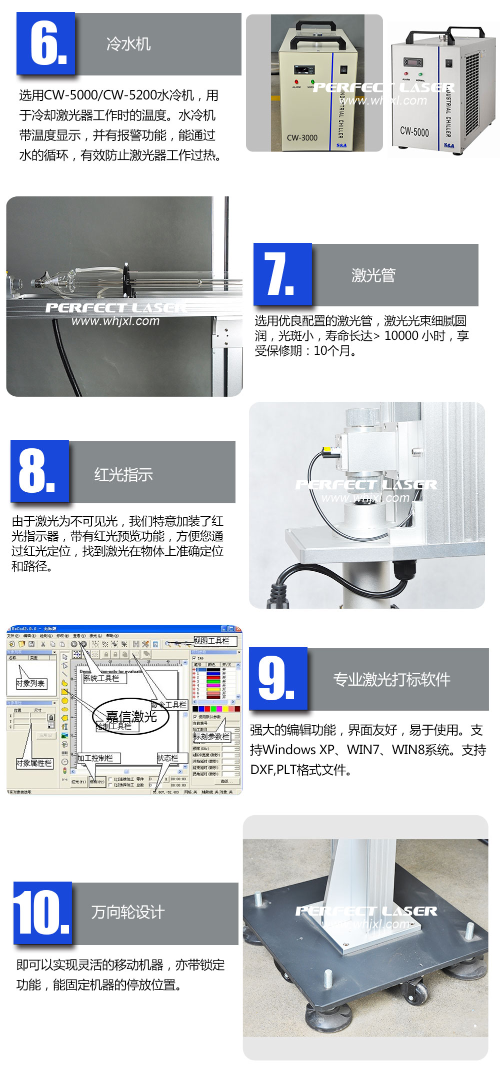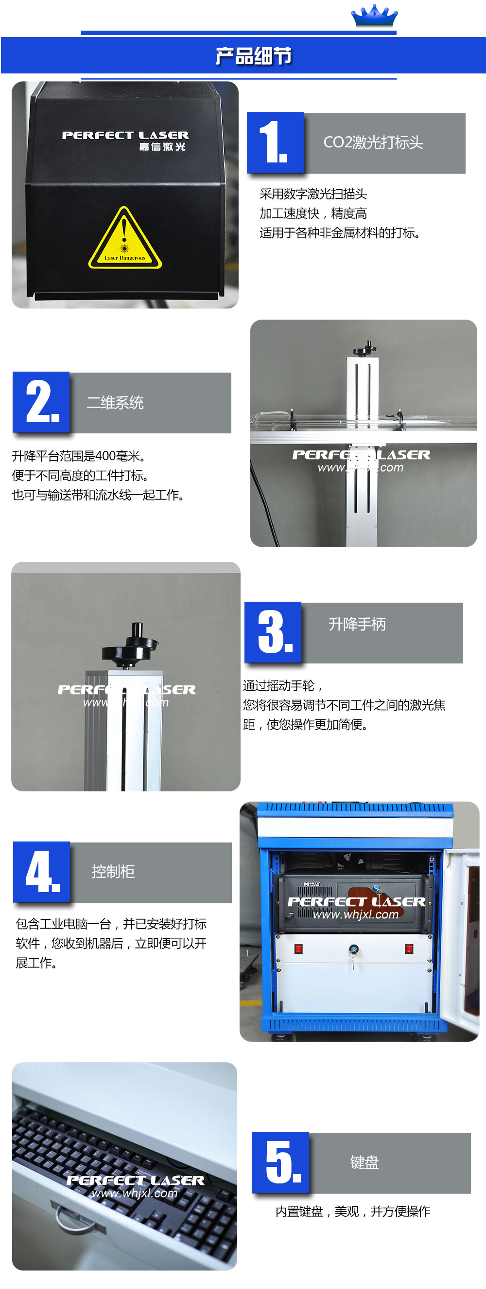 7. 一體化結構,小(xiǎo)巧而緊湊,占地麵(miàn)積小,便於移動及安裝,所(suǒ)以該Co2激光打標機能適應加工地點經常(cháng)變換的需求;