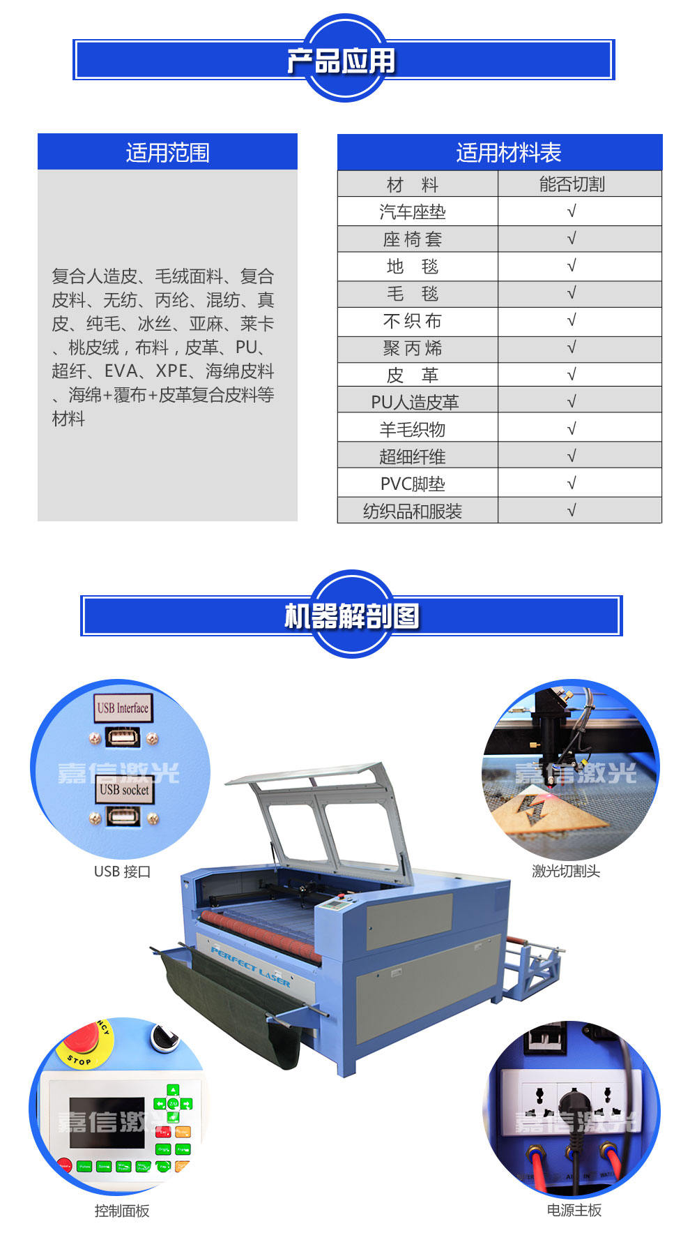 1.適用材料:複合人造皮、毛絨麵料、複合皮料、無紡(fǎng)、丙綸、混紡、真皮、PU,純毛、冰絲、亞麻、萊卡、桃皮絨,布料,皮革、PU、超纖(xiān)、EVA、XPE、海(hǎi)綿皮料、海綿+覆布+皮革複合皮料等材料