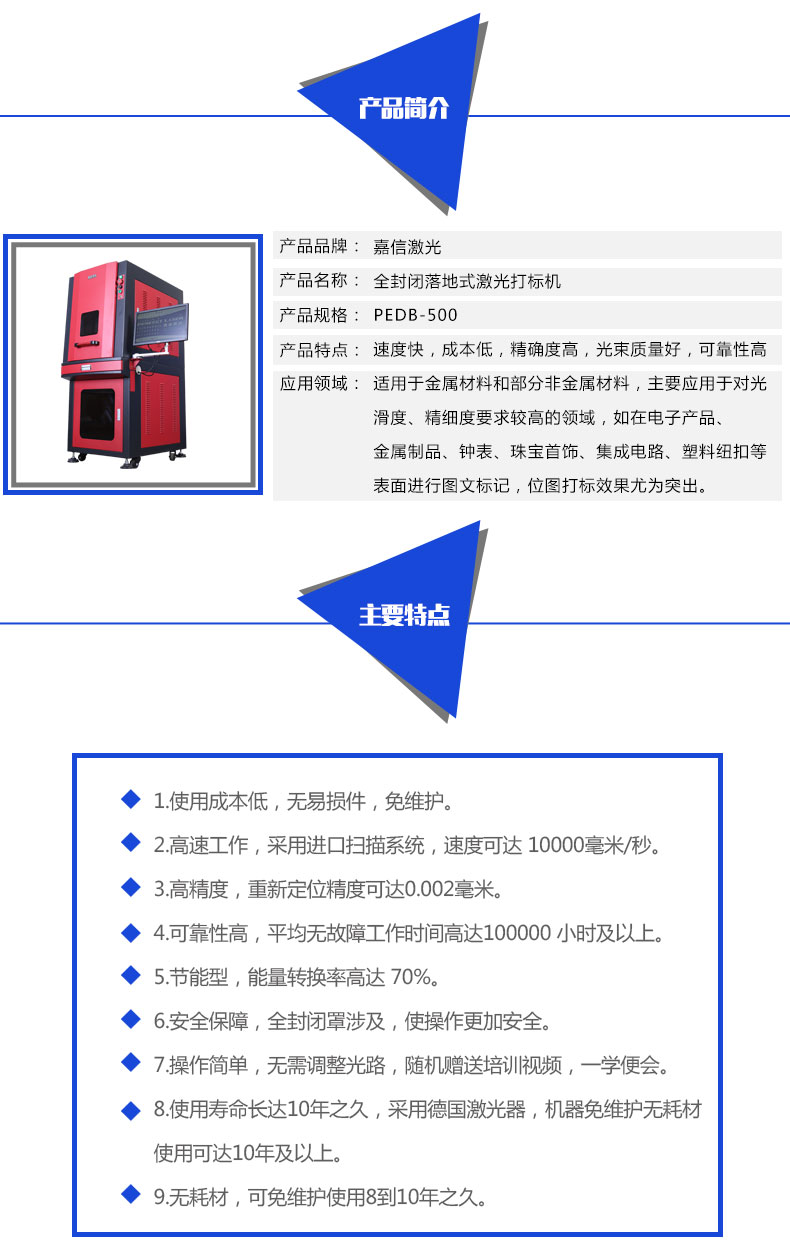首頁 > 標識標記係列 > 光纖激(jī)光打標(biāo)機(jī) > 全封閉(bì)外罩環保型金屬激光打標(biāo)機PEDB-500