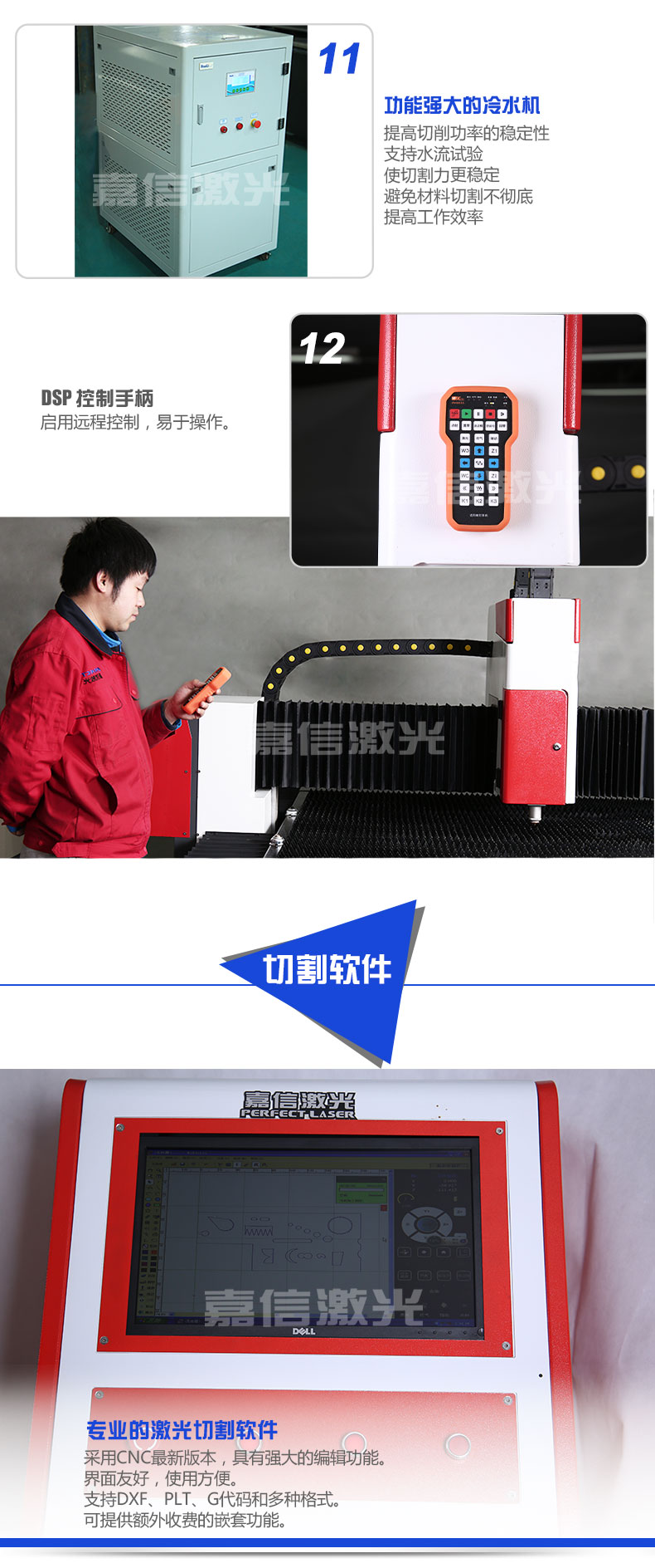 2.切割精度高:2000w光纖切割機采用日本鬆(sōng)下伺服電機,雙滾(gǔn)珠絲杠傳動,精密直線導軌(guǐ)結構,與單個驅動係統相比,精度更(gèng)高。且0.05mm的切(qiē)割縫隙,適合高精密加工;