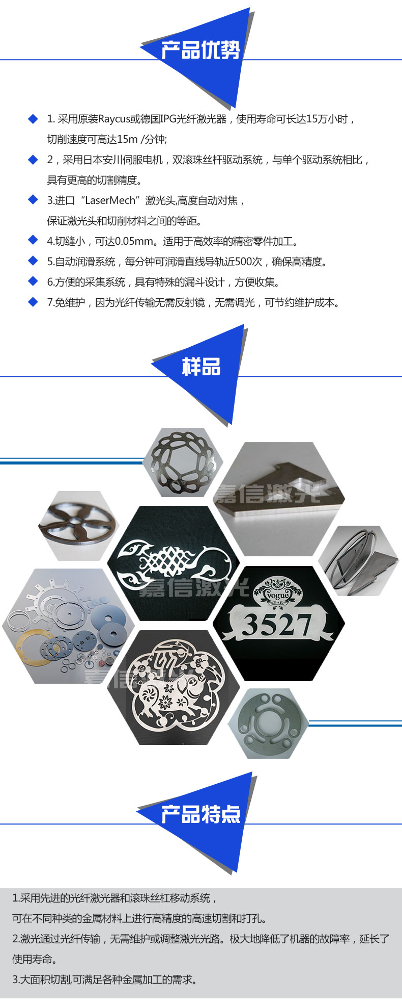 1.加工靈活,兼容多種圖(tú)文:采(cǎi)用嘉(jiā)信(xìn)激(jī)光數控軟件,700w金屬光纖切割(gē)機支(zhī)持各(gè)種圖形和文字,預覽產品切割效果,適用性廣泛,操作簡單;