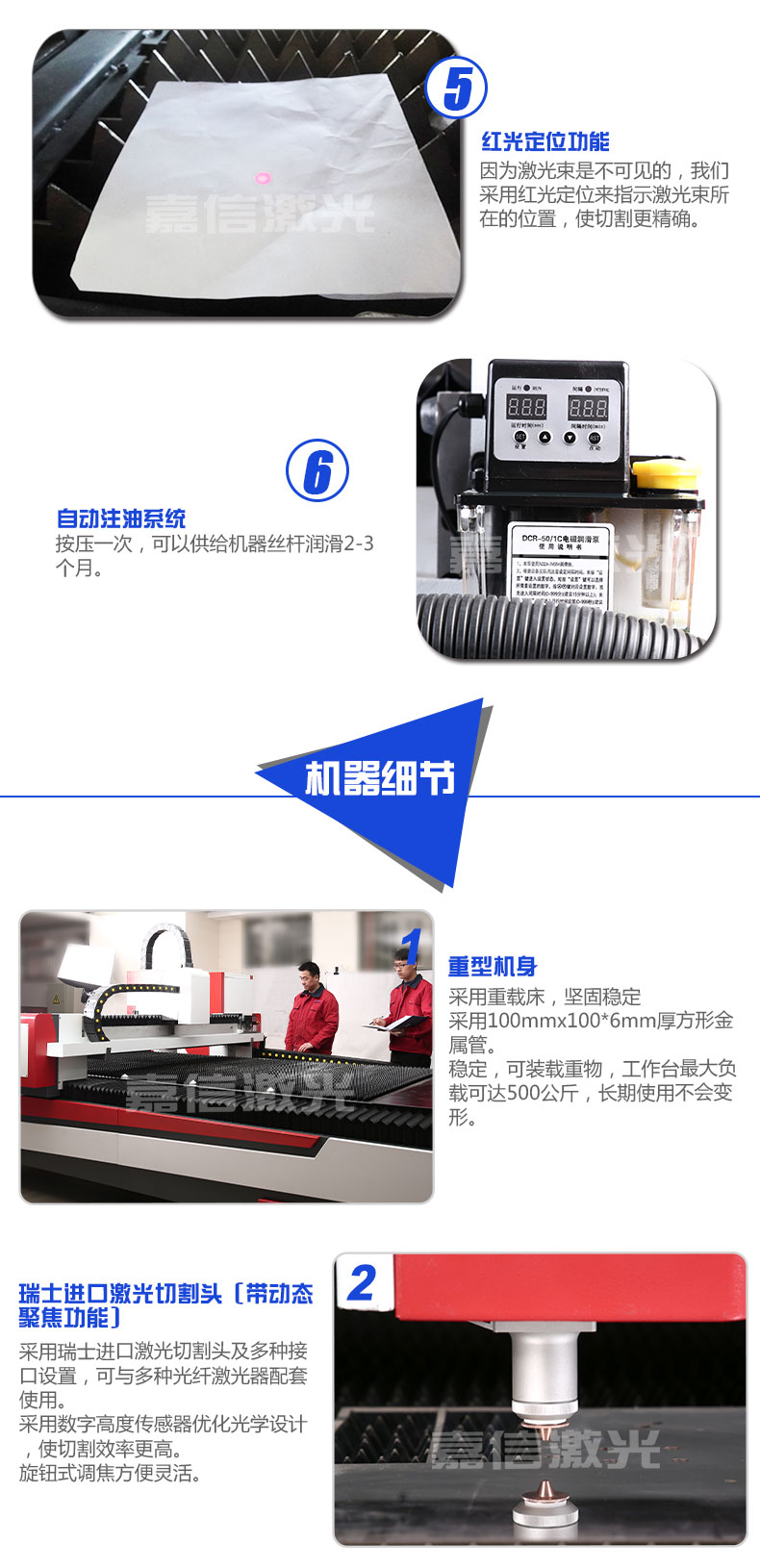 4.人(rén)性化自動潤滑係統:,700w光纖切割機可以確保(bǎo)每(měi)分鍾近500倍潤滑導軌、齒輪、軸承,減少機械零件摩擦,獲得更好的性能。