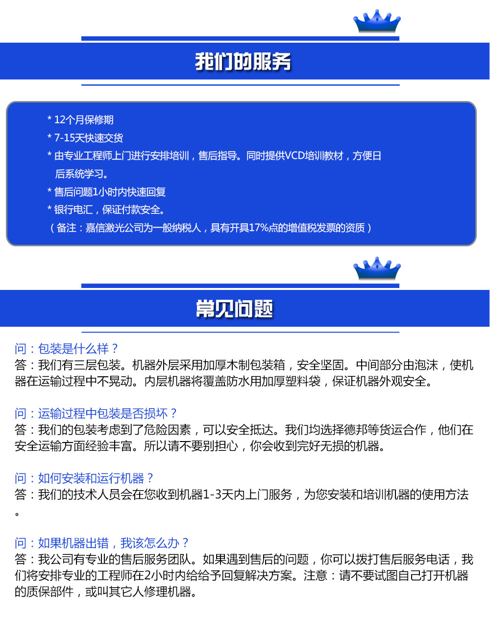 2.適(shì)合行業:禮品模型、亞克力製品、標識(shí)標牌、家具玩具、地板、廣告展示、五金刀具、廣告標牌製作、金屬工藝品(pǐn)、機械零件、儀表電(diàn)器零件(jiàn)、鋸片、彈簧片(piàn)等多種行業(yè)均可利用該金屬非金屬激光混(hún)切機。