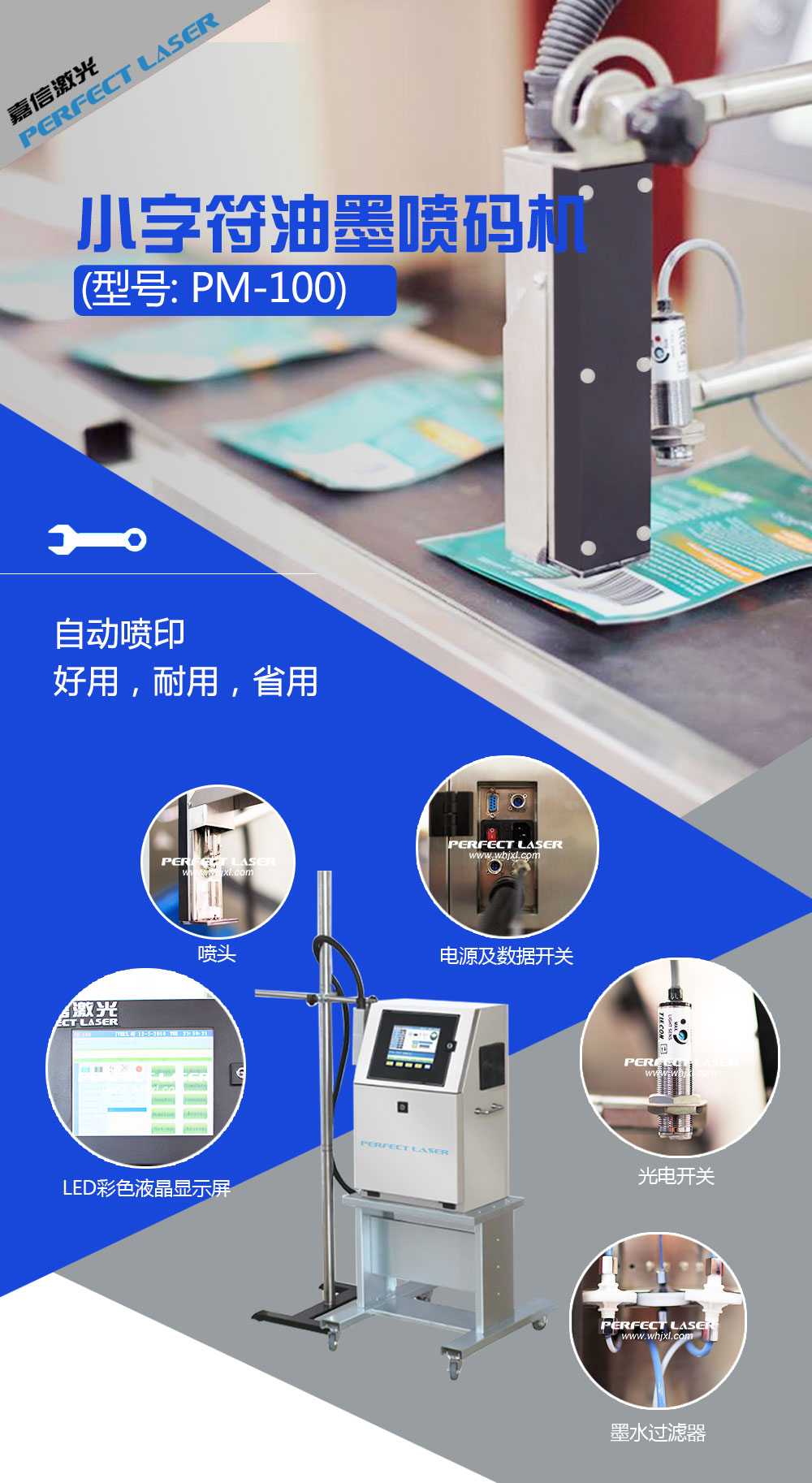小字符噴碼機采用快幹墨水,附著力出色,適用於各種材質的表麵,比如薄膜、玻璃、金屬、塑料(liào)、PE、PVC、紙張、木材(cái)、橡膠(jiāo)等。另(lìng)外,對(duì)於不同行業(yè)的要求(qiú),提供不同的墨水,包括標準(zhǔn)墨水、顏料(liào)墨水、可食用墨水、抗汽油墨水、UV墨水等。