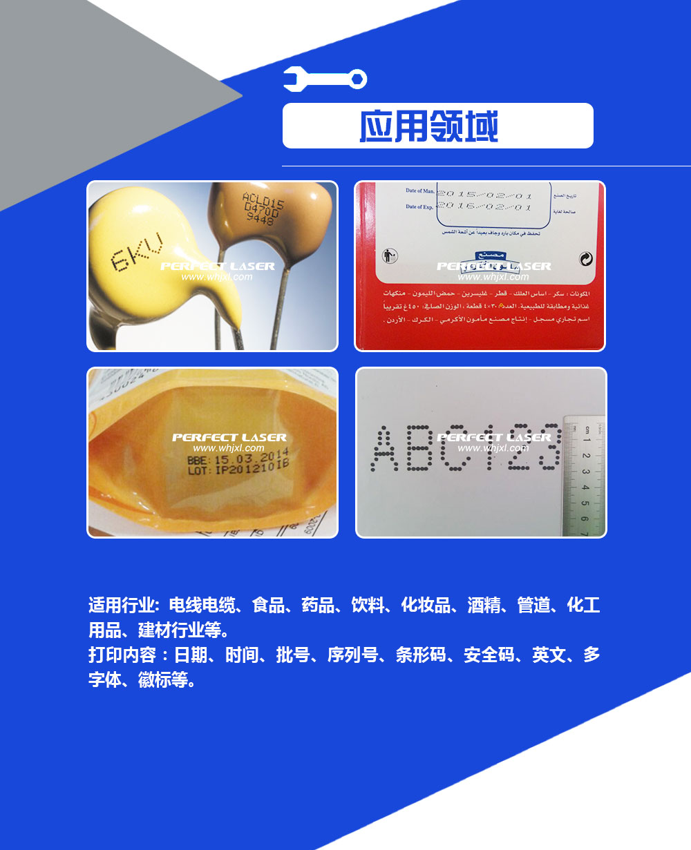 3. 噴印範圍廣泛:能與任何生產線匹配。可在塑料(liào)、玻璃、紙張(zhāng)、木材、橡膠、金屬等多種材料、不同形體的表麵噴印(yìn)商(shāng)標,出廠日期、說明、批號等。