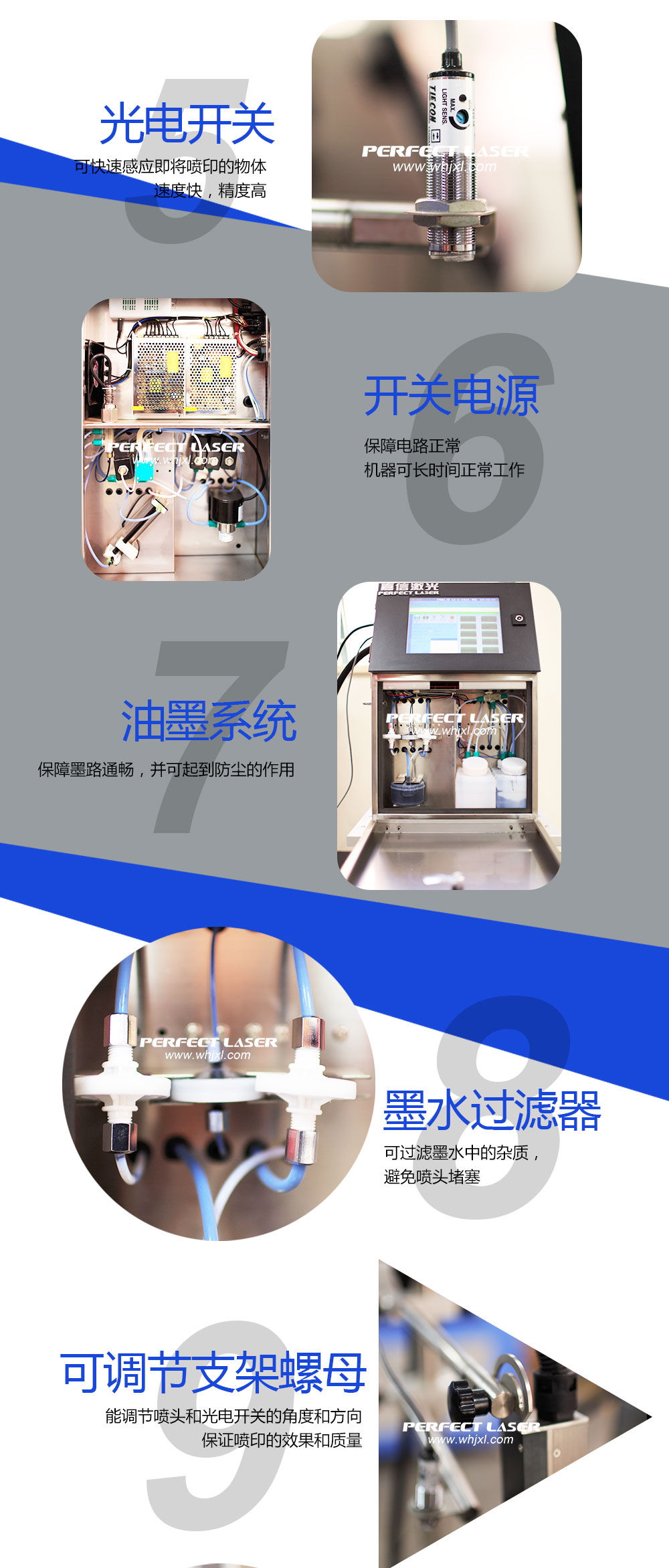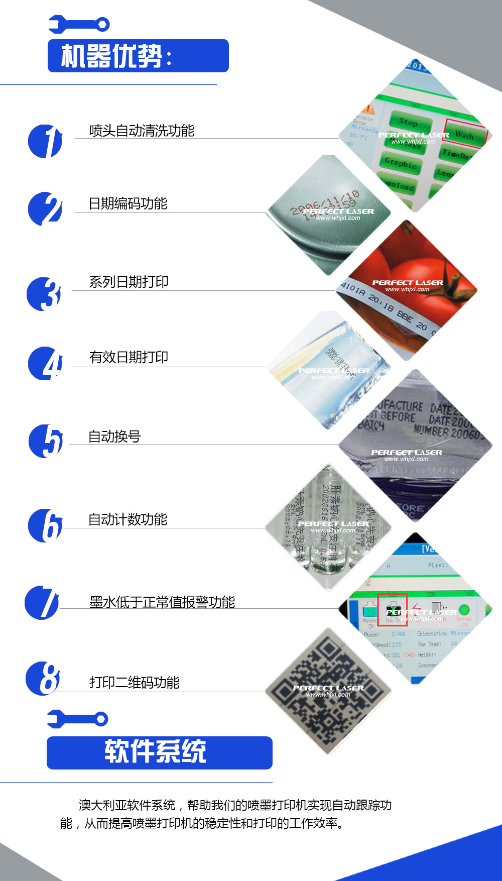 4. 噴印(yìn)程序編輯迅速方便:通過電腦或編輯麵板輸(shū)入所要(yào)求的數字、文字、圖(tú)案和行數等信(xìn)息,修改打印信息,隻按幾個鍵便可完成。