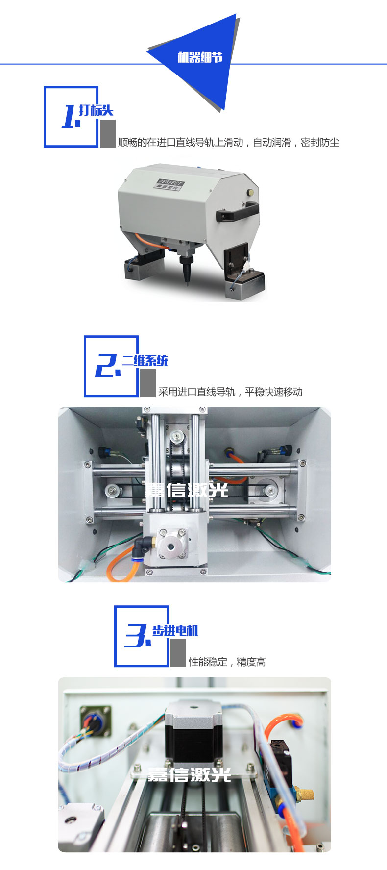 2. 操(cāo)作方便:便攜(xié)式氣動打標機對於汽車大梁、車架、發動(dòng)機、大(dà)型機械設備等(děng)不便移(yí)動物體打標操作尤為方便;