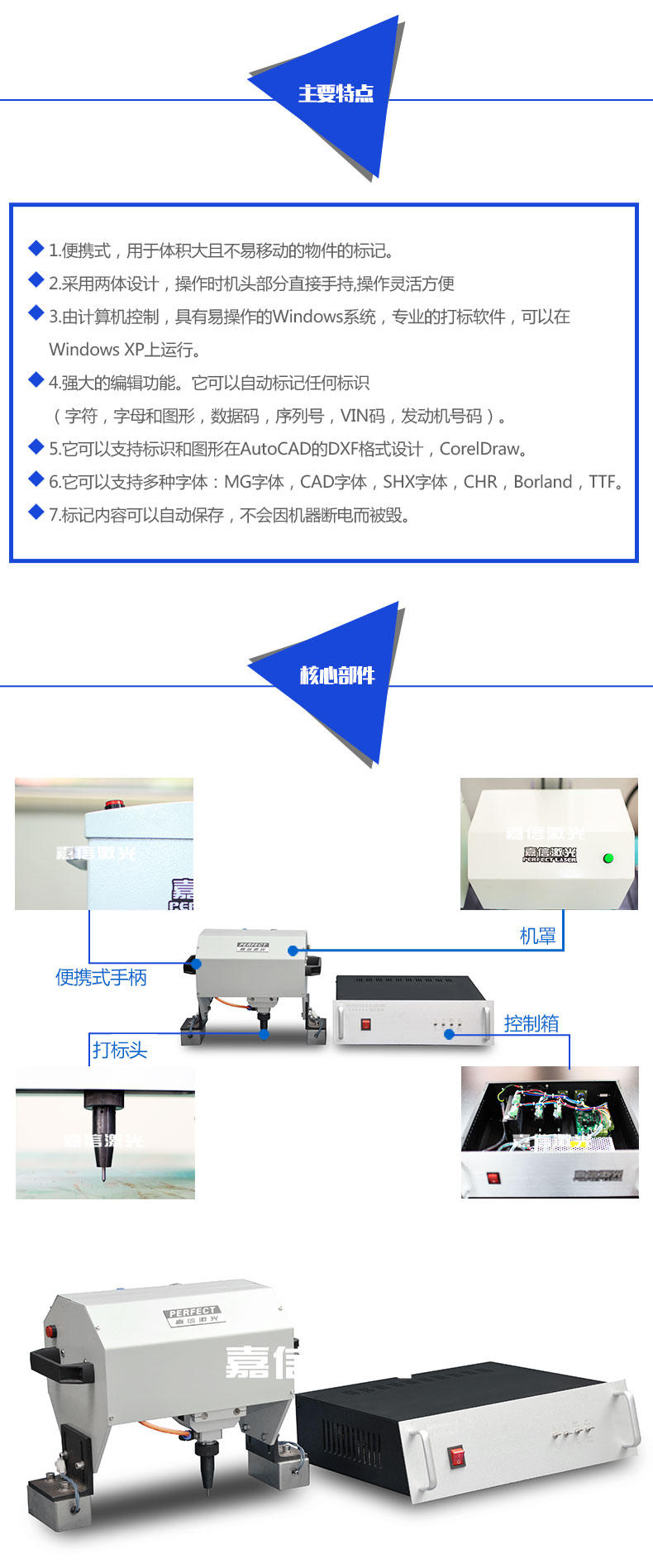 5. 編輯功能強(qiáng)大:便攜(xié)式氣動打標機可標記任何標誌、字符、字母、圖形、數(shù)據編碼,序列號,VIN碼,發動機號等;