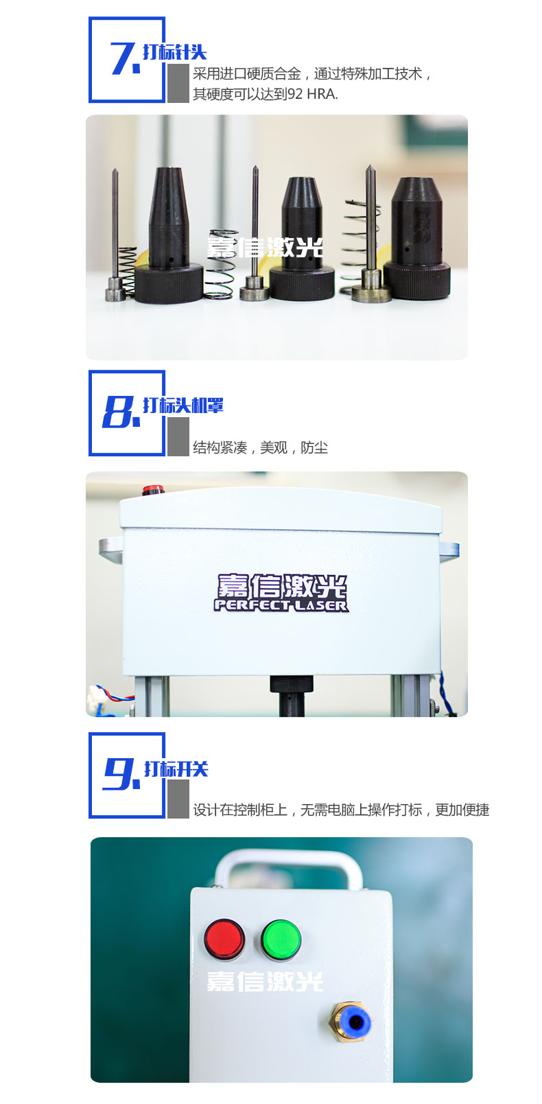 4. 高硬質合金打標(biāo)針頭:便攜式氣動打標機采用進口全硬質(zhì)打標針頭(tóu),經久耐用,打標效果更加清晰;