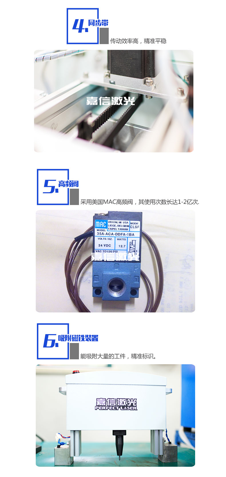 3. 電磁吸附能力強:當機器通電(diàn)作業(yè)時便帶有吸附(fù)功能,便攜式氣動打(dǎ)標機可吸附於被打標的工(gōng)件的(de)表麵來穩定機身,大大節省操作人員體(tǐ)力;