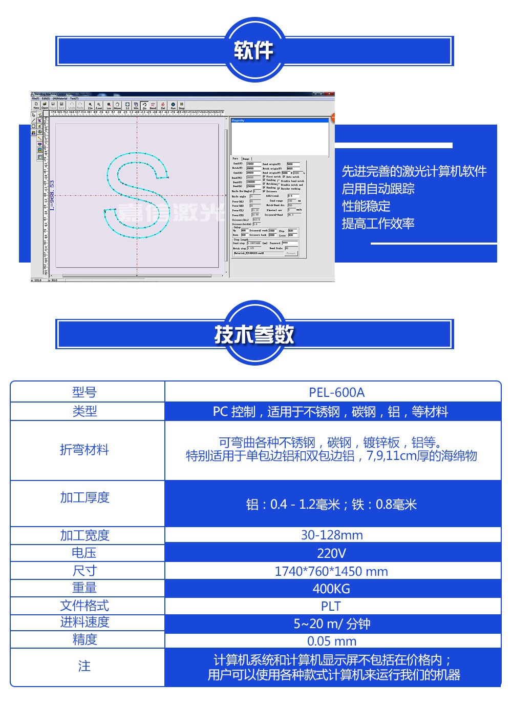 PEL-600A型全自動包邊字(zì)折彎機基於武漢91视频官网激光有限(xiàn)公司PEL-600成熟平台製造生產,設備結構精密(mì),經濟適用,是各種鋁型材料(彩鋁平(píng)板、單包邊、雙(shuāng)包邊卷邊條等)加工的優(yōu)先選擇。